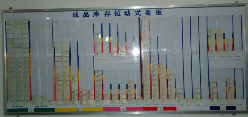 成品超級(jí)市場(chǎng),包裝完成後成品入成品倉,上超級(jí)市場(chǎng)看板,客戶拉動(dòng)資訊直接回饋到看板上,與毛胚超級(jí)市場(chǎng)對(duì)接,建立JIT生產(chǎn)模式,實(shí)現(xiàn)準(zhǔn)時(shí)化生產(chǎn)作業(yè)。 |